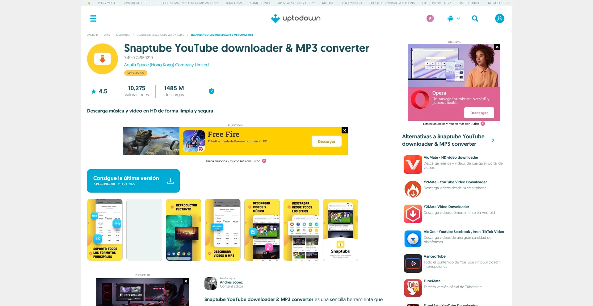 Descarga gratis el APK de Snaptube YouTube downloader & MP3 converter para Android. Descarga música y vídeo en HD de forma limpia y segura. Snaptube...