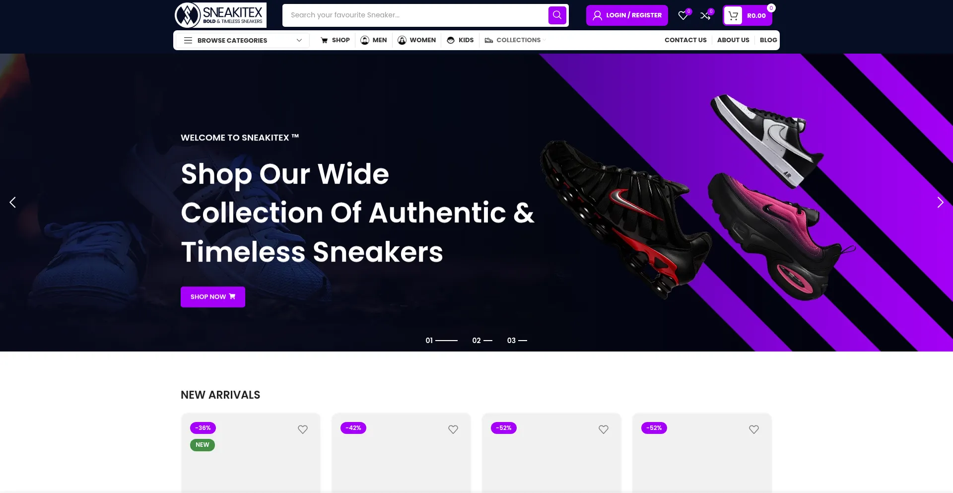 Analysis indicates that sneakitex.co.za operates as an e-commerce platform facilitating online transactions for goods or services. The website implements shopping cart functionality, payment processing systems, and product catalog features typical of commercial retail operations.
