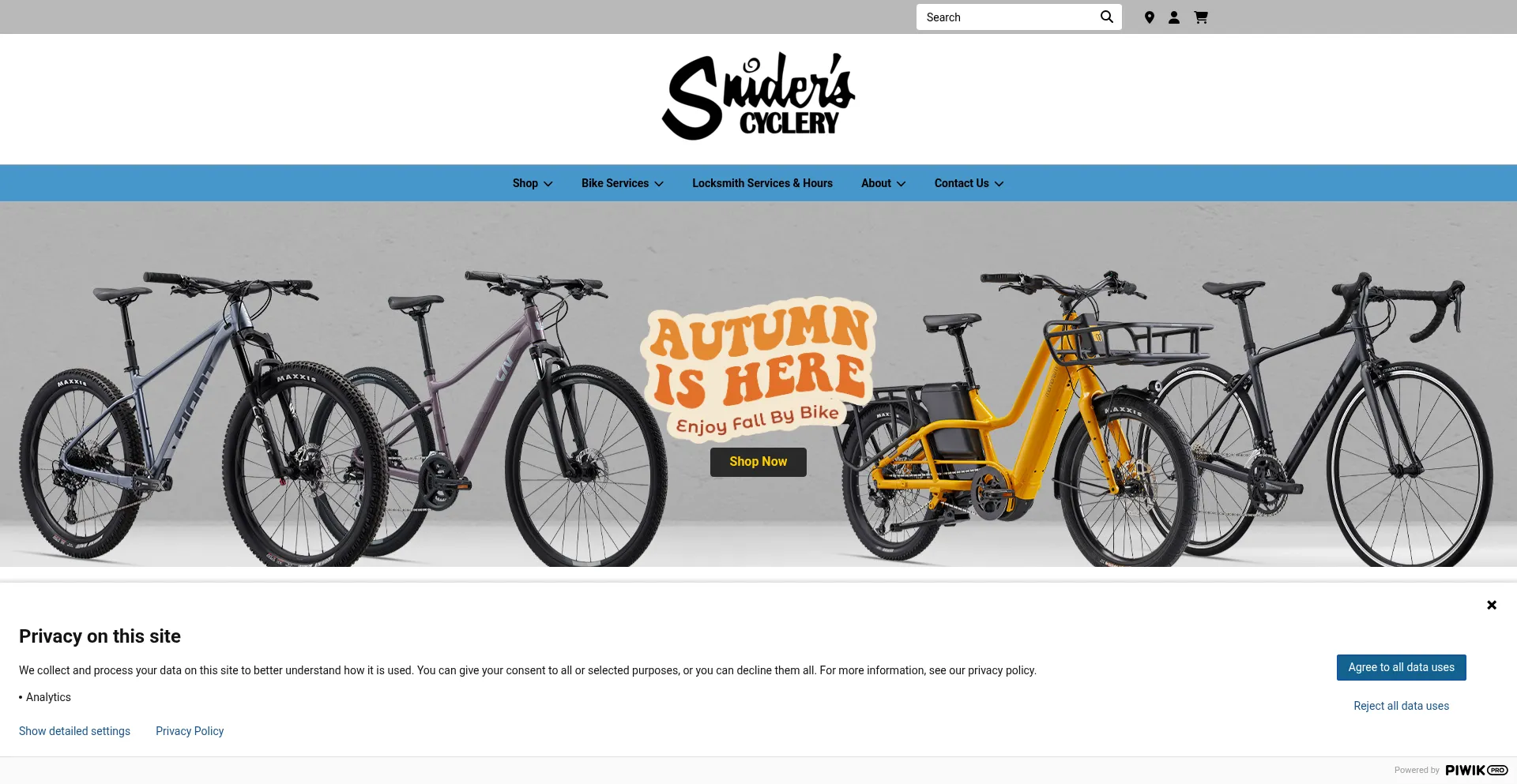 The sniderscyclery.com website implements data collection forms requesting personal information including names, email addresses, phone numbers, or other sensitive details. Users should verify the legitimacy of it and review privacy policies before submitting personal data.