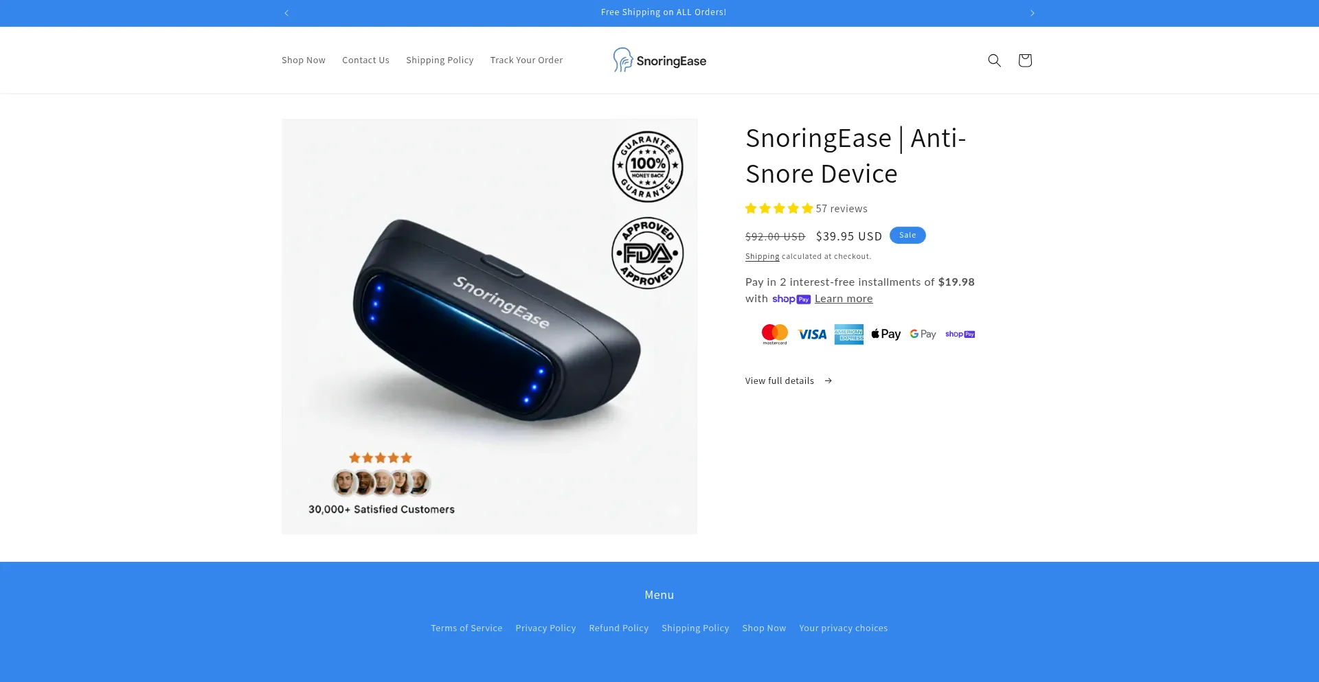 Our analyzer determines that website snoringease.com is using Shopify CMS. Shopify is a popular e-commerce platform, powering around 4.4% of websites globally.