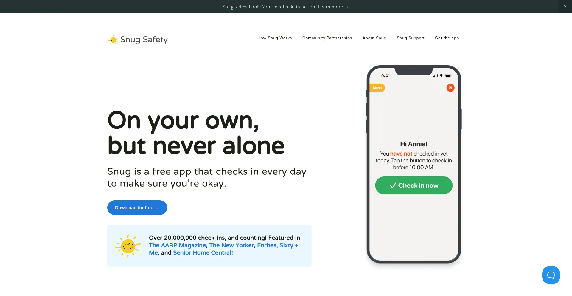 Have peace of mind that someone will know if you need help. Over 10,000,000 check-ins so far. Featured by AARP Magazine.
