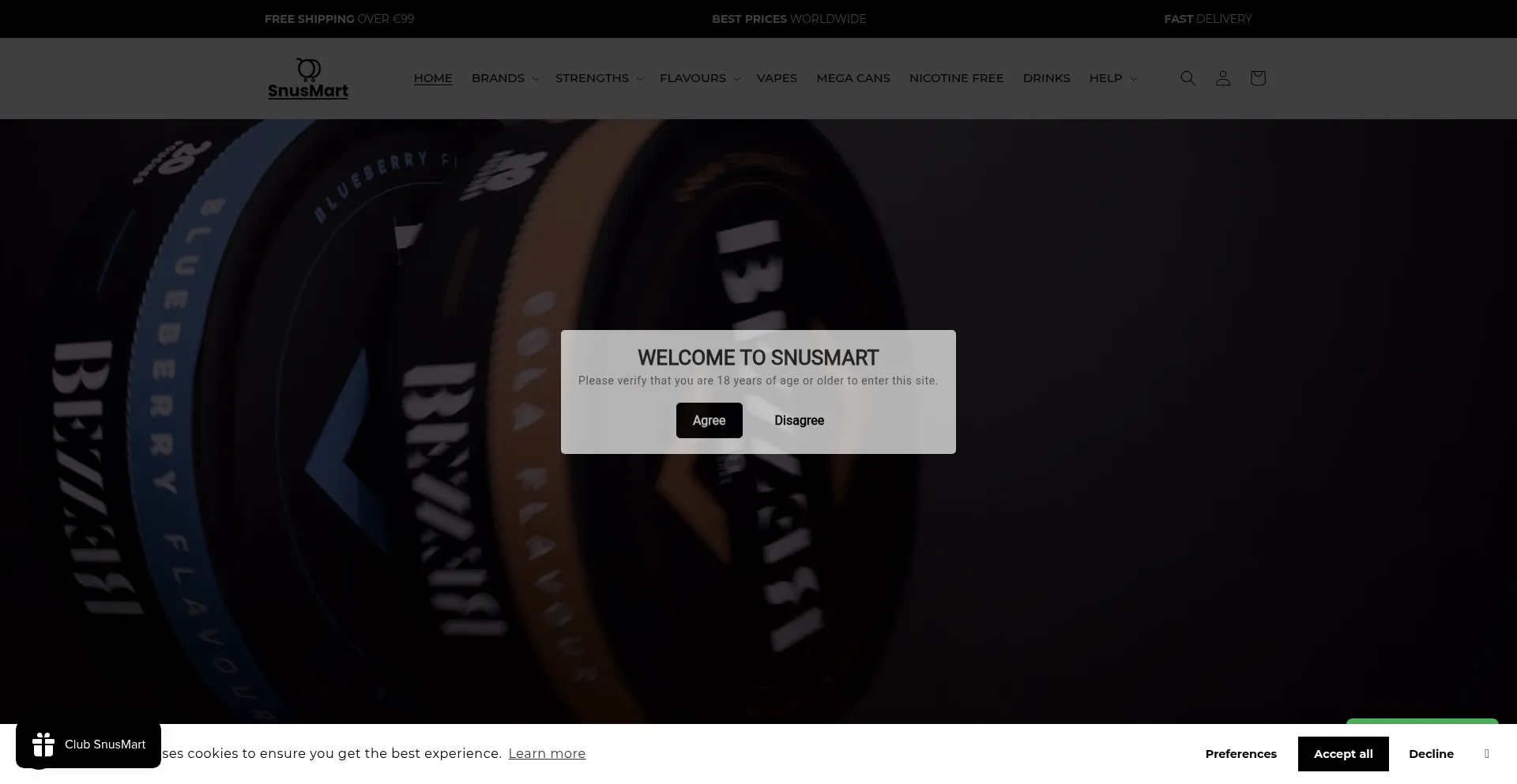 The website implements cookie consent mechanisms in compliance with privacy regulations such as GDPR or CCPA. This demonstrates that snusmart.com adheres to data protection standards and provides users with control over personal data collection practices.