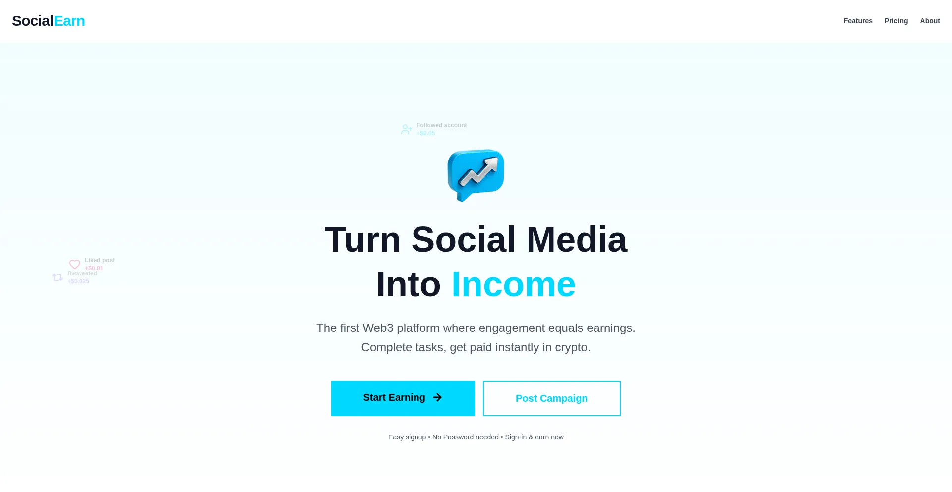 Turn your social media engagement into crypto. Get paid instantly for liking, retweeting, and following on Twitter. Web3 engagement platform built on Solana.