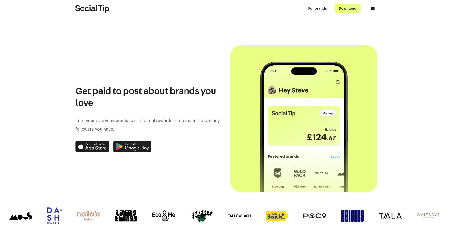 Social Tip lets you turn everyday moments into real cash rewards by sharing your love for your favourite brands.