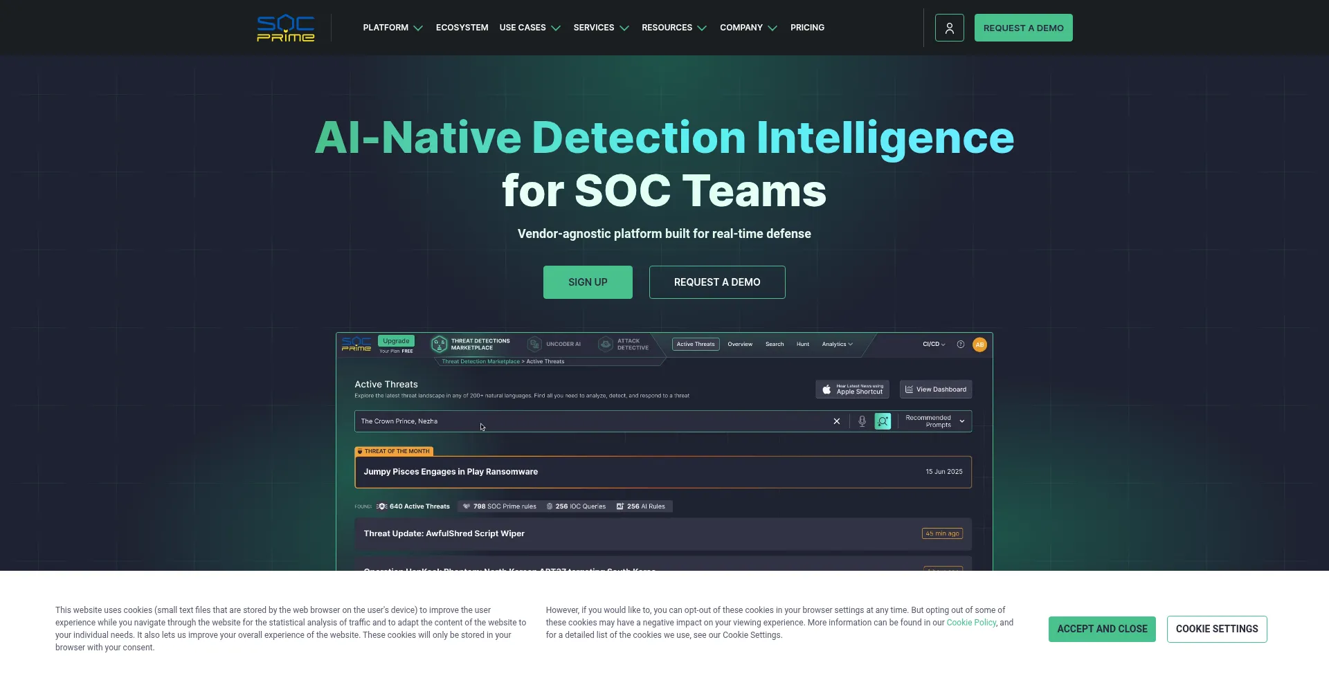 The website implements cookie consent mechanisms in compliance with privacy regulations such as GDPR or CCPA. This demonstrates that socprime.com adheres to data protection standards and provides users with control over personal data collection practices.