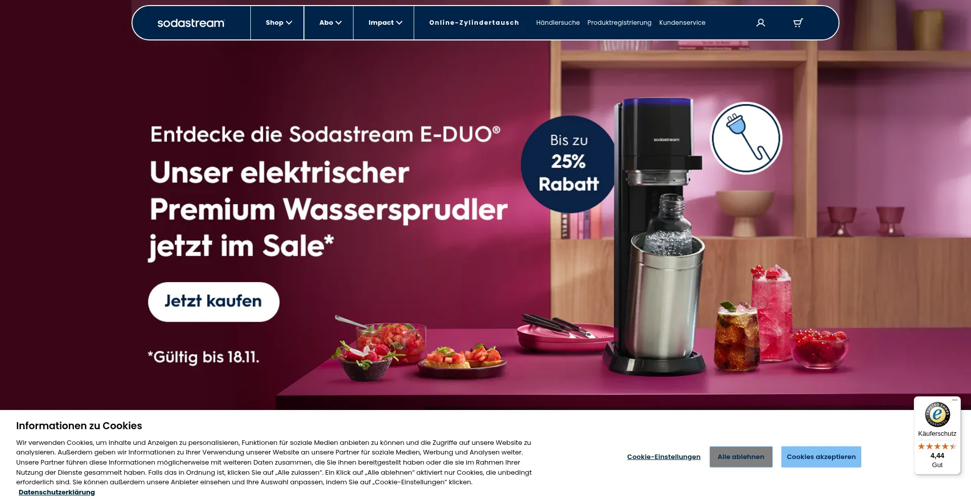 The website implements cookie consent mechanisms in compliance with privacy regulations such as GDPR or CCPA. This demonstrates that sodastream.de adheres to data protection standards and provides users with control over personal data collection practices.