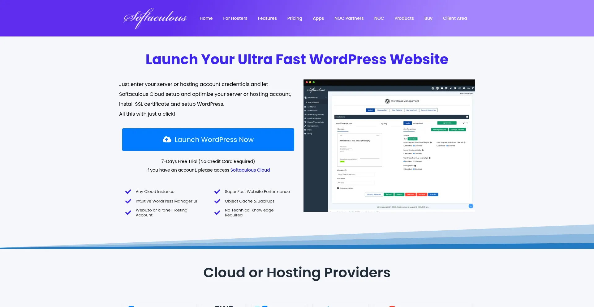Just enter your server or hosting account credentials and let Softaculous Cloud setup and optimize your server or hosting account, install SSL certificate and setup WordPress.