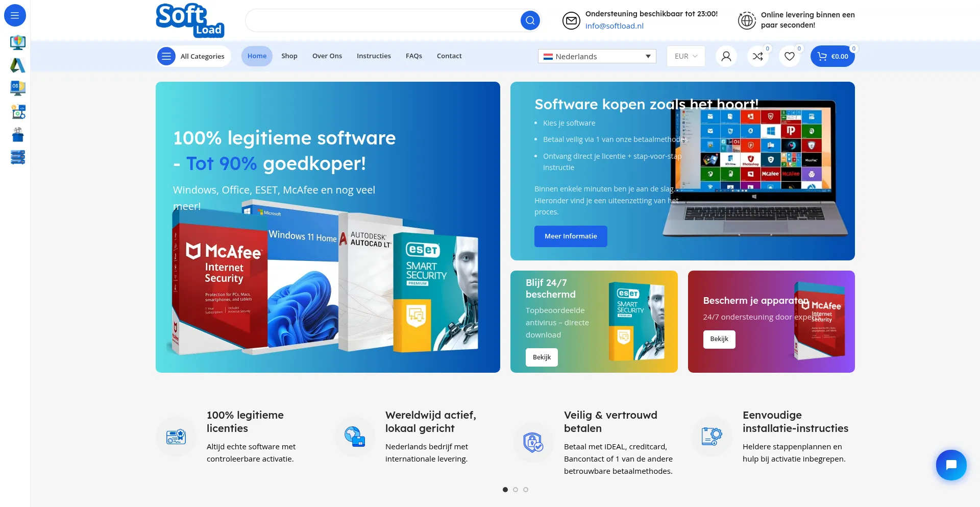 Analysis indicates that softload.nl operates as an e-commerce platform facilitating online transactions for goods or services. The website implements shopping cart functionality, payment processing systems, and product catalog features typical of commercial retail operations.