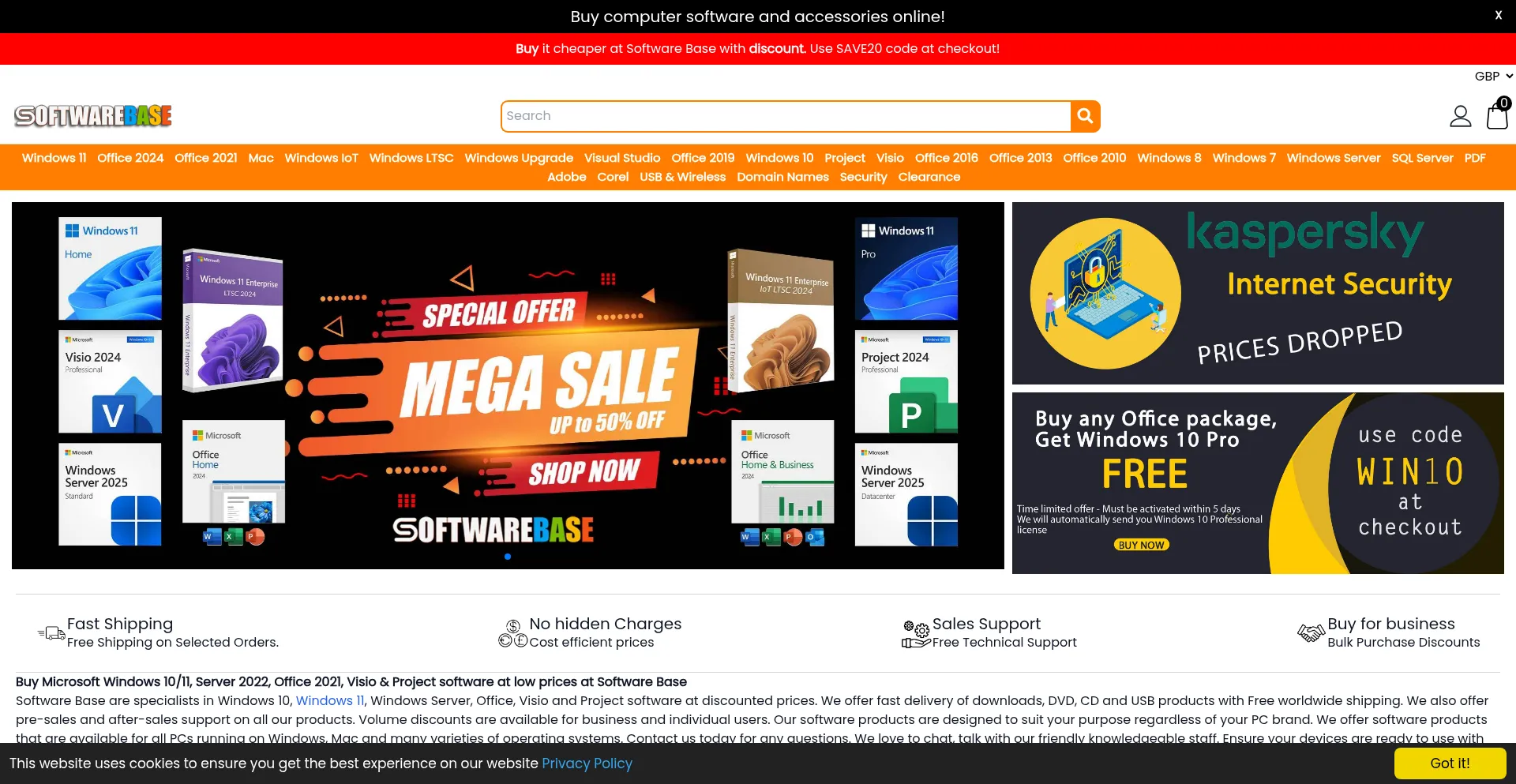 Analysis indicates that softwarebase.uk operates as an e-commerce platform facilitating online transactions for goods or services. The website implements shopping cart functionality, payment processing systems, and product catalog features typical of commercial retail operations.