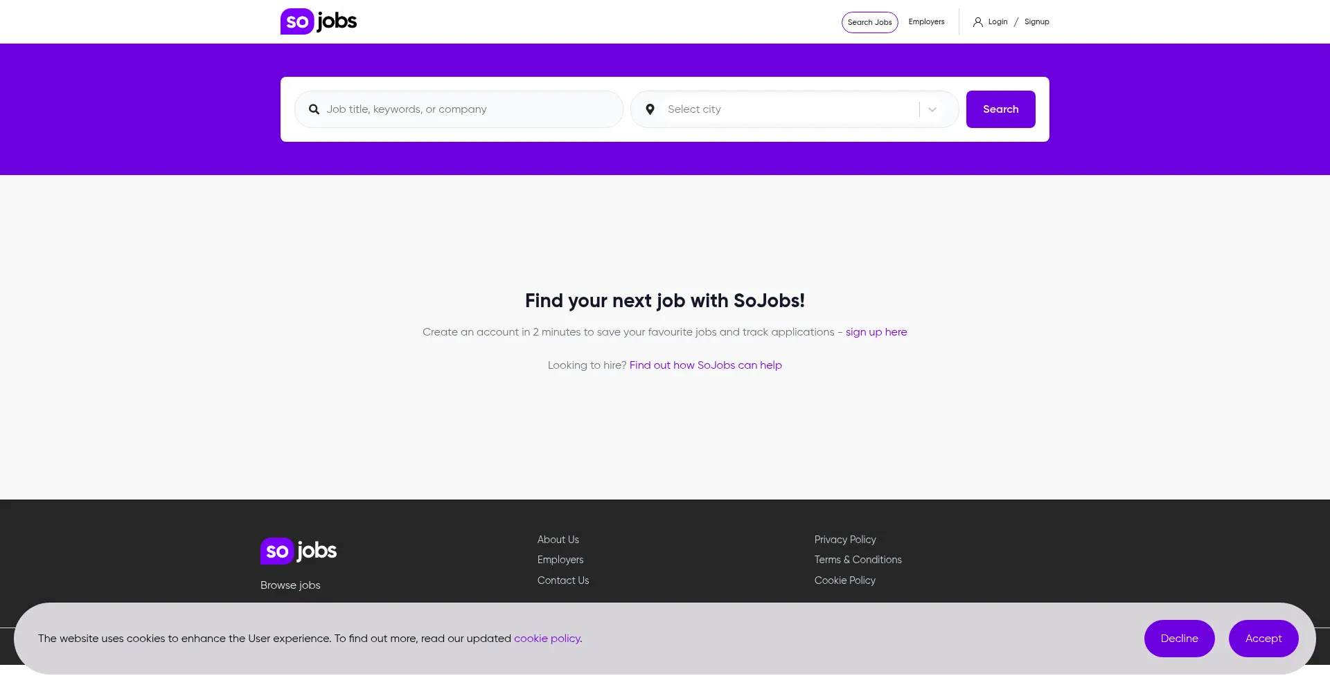 The website implements cookie consent mechanisms in compliance with privacy regulations such as GDPR or CCPA. This demonstrates that sojobs.us adheres to data protection standards and provides users with control over personal data collection practices.