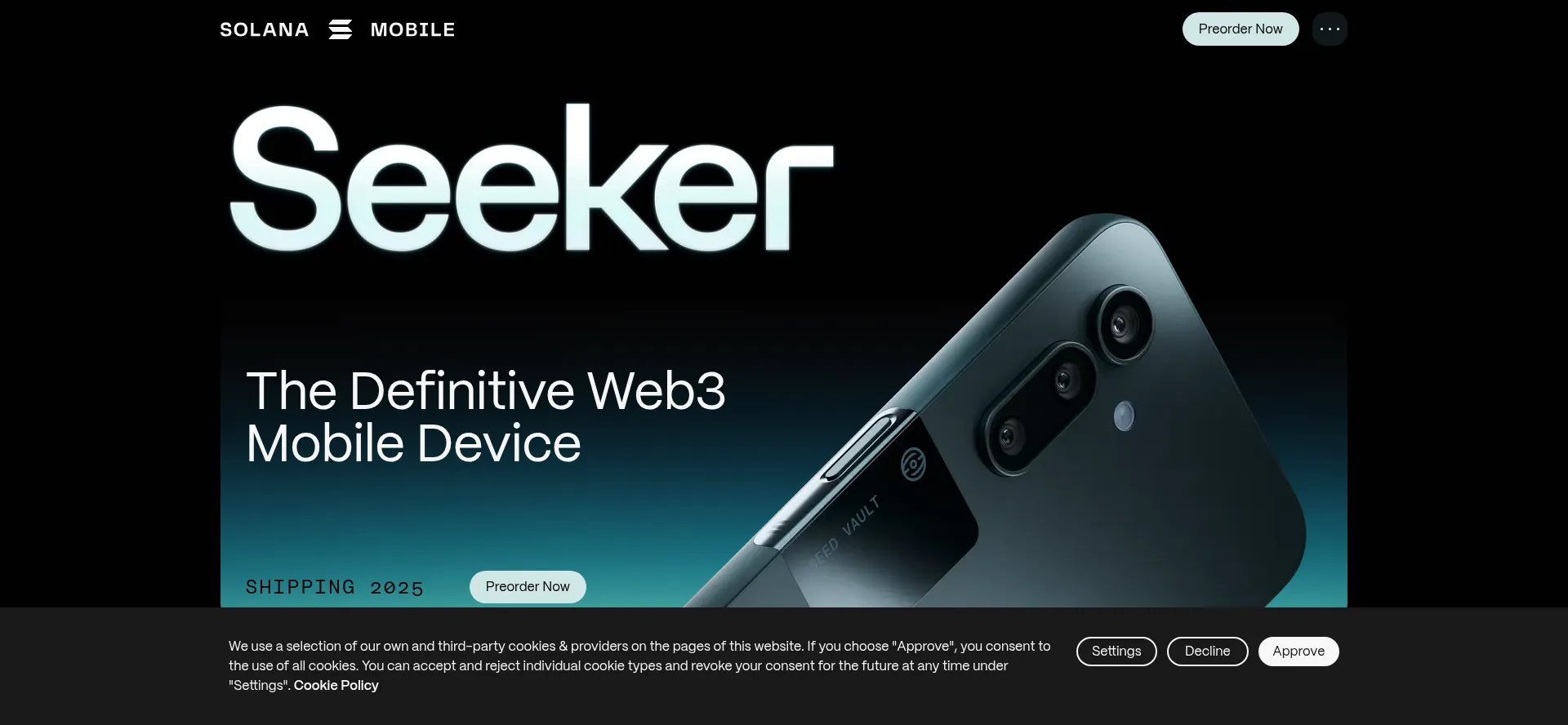 The website implements cookie consent mechanisms in compliance with privacy regulations such as GDPR or CCPA. This demonstrates that solanamobile.com adheres to data protection standards and provides users with control over personal data collection practices.