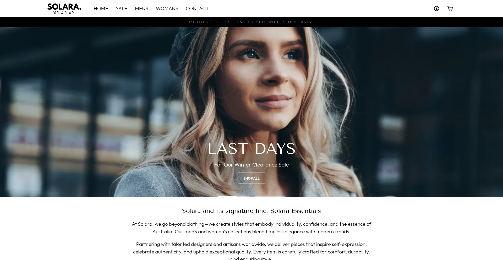 Analysis indicates that solarasydney.com operates as an e-commerce platform facilitating online transactions for goods or services. The website implements shopping cart functionality, payment processing systems, and product catalog features typical of commercial retail operations.