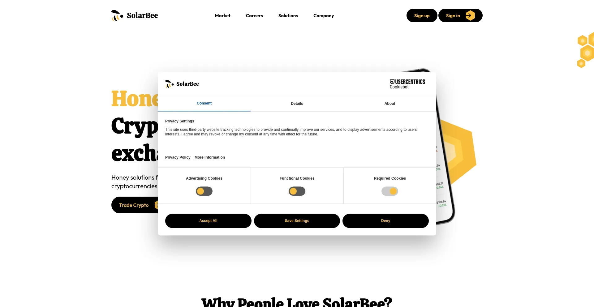 The website implements cookie consent mechanisms in compliance with privacy regulations such as GDPR or CCPA. This demonstrates that solarbee.io adheres to data protection standards and provides users with control over personal data collection practices.