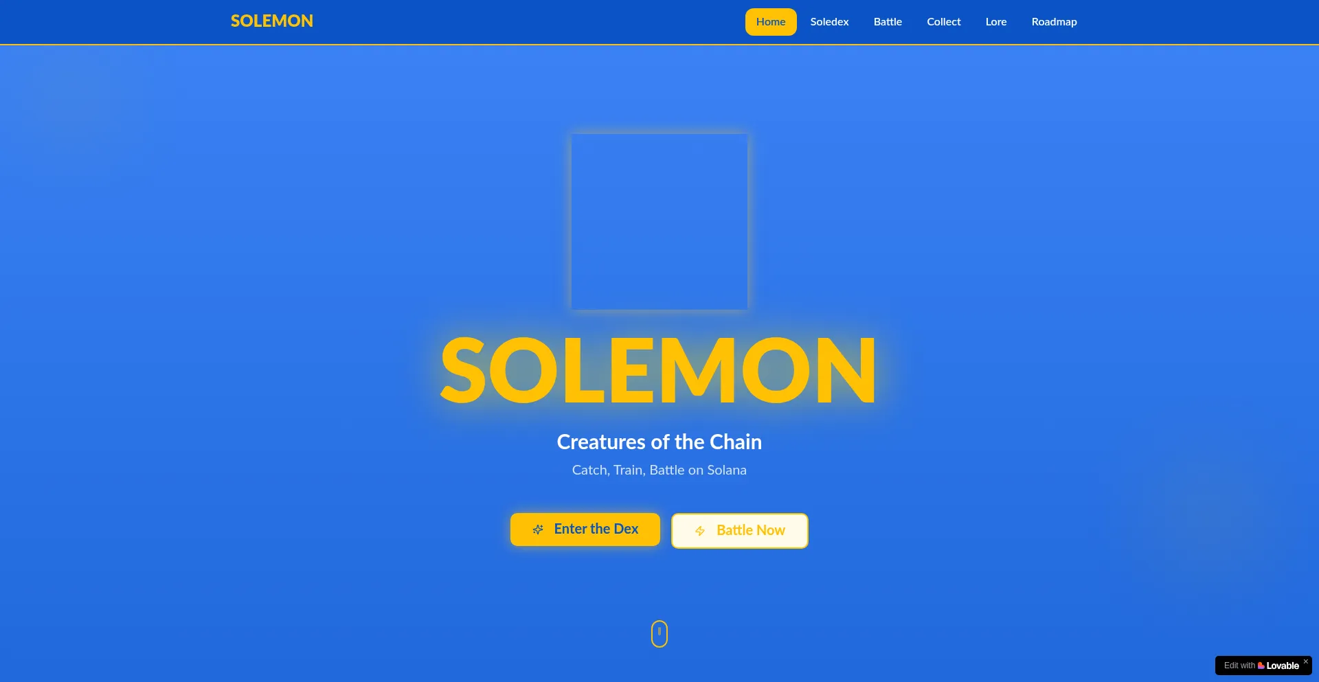 Solemon: Where transactions become creatures. Mint, collect, and battle unique digital beasts on the Solana blockchain.