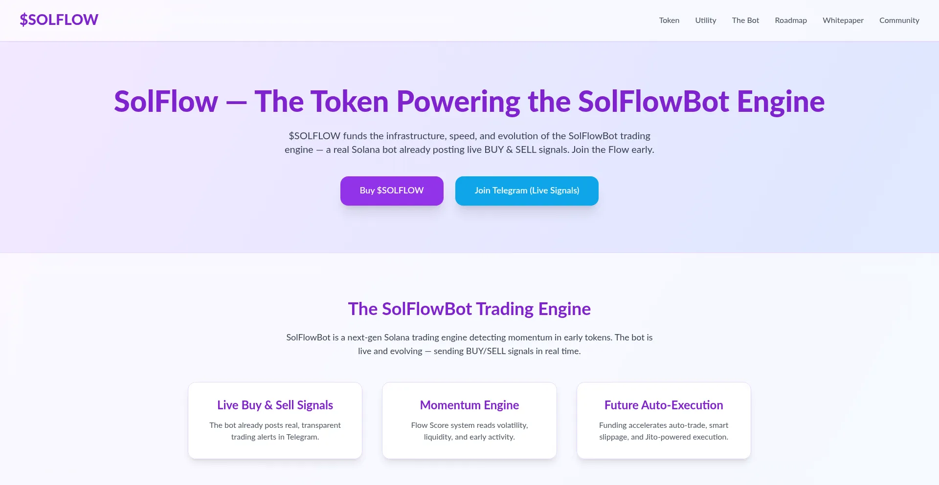 $SOLFLOW funds the infrastructure, speed, and evolution of the SolFlowBot trading engine — a real Solana bot already posting live BUY & SELL signals.