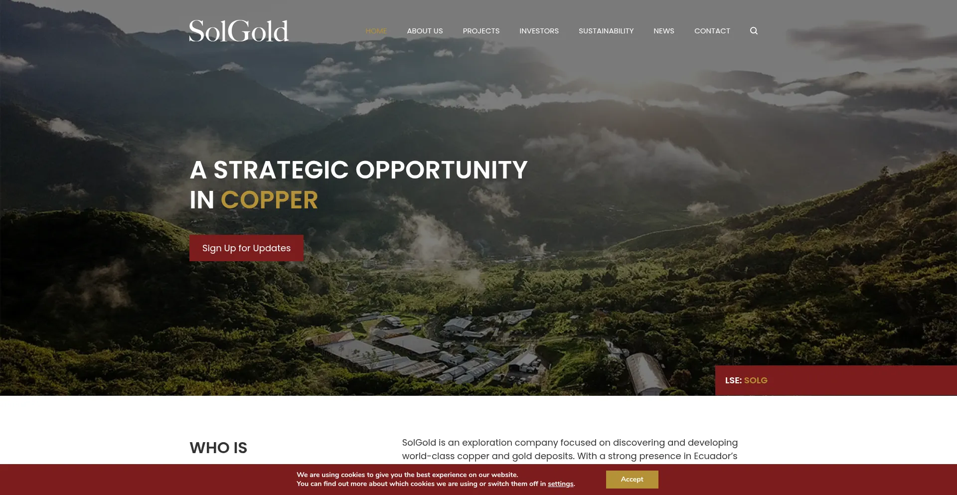 The website implements cookie consent mechanisms in compliance with privacy regulations such as GDPR or CCPA. This demonstrates that solgold.com adheres to data protection standards and provides users with control over personal data collection practices.
