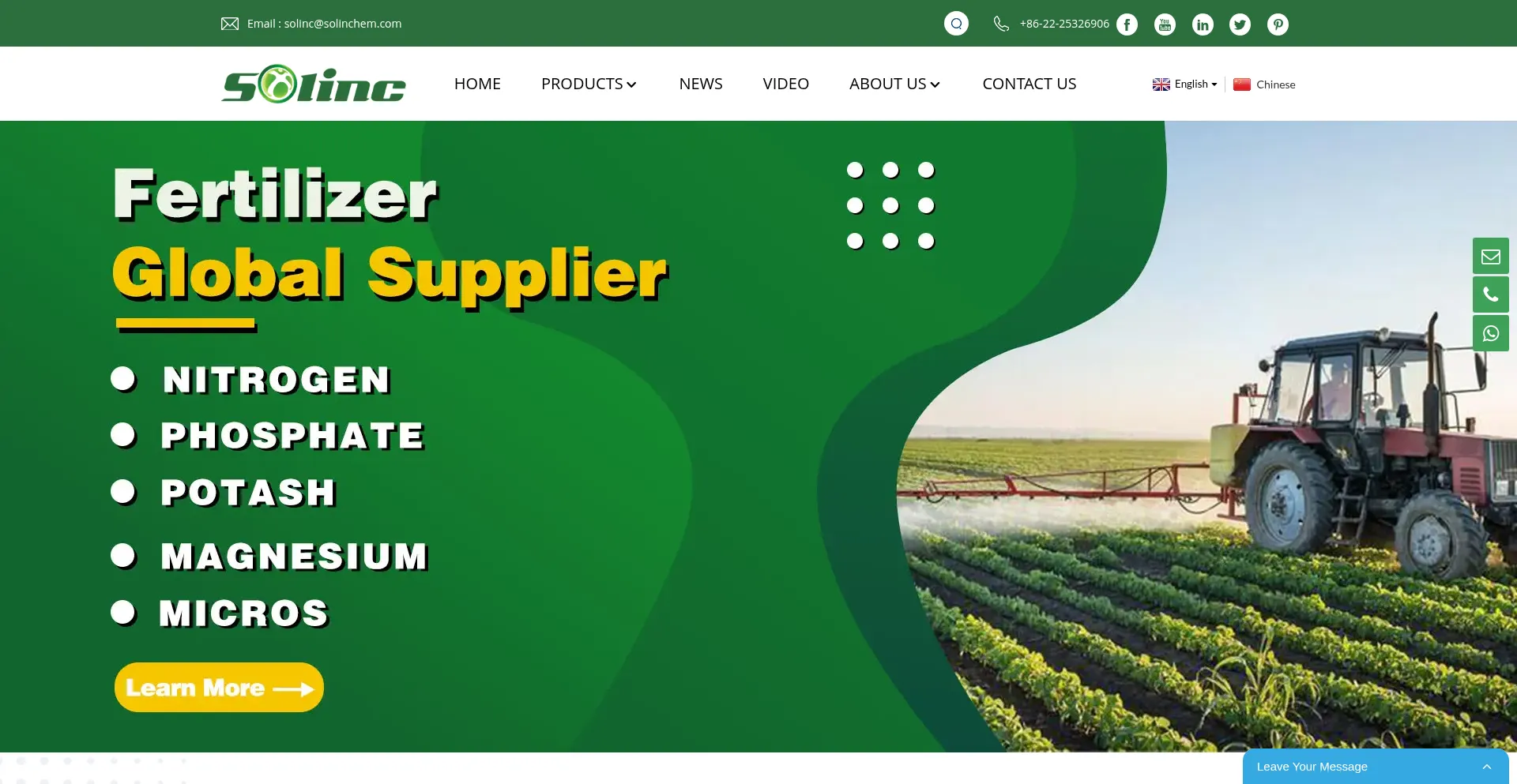 Solinc Fert engaged in producing and exporting Nitrogen Fertilizers, Phosphate Fertilizers, Potash Fertilizers, Magnesium Fertilizers and Micro-nutrients.