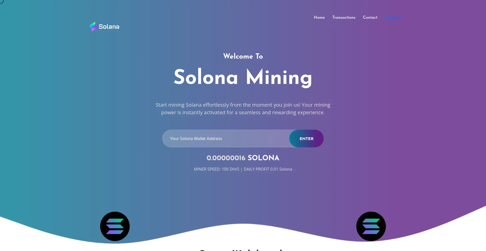 The solona-mining.cc probably offers cloud mining services or cryptocurrency mining investments. Some platforms provide legitimate mining rental services, while others may use fake mining dashboards to display virtual earnings that cannot be withdrawn.