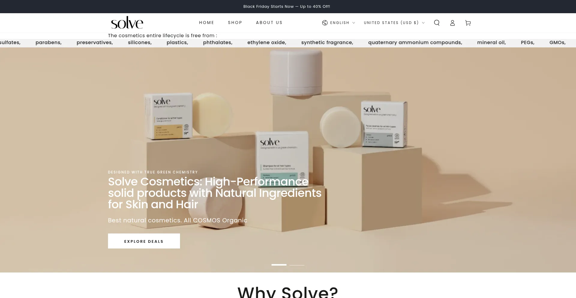 Our analyzer determines that website solvecosmetics.eu is using Shopify CMS. Shopify is a popular e-commerce platform, powering around 4.4% of websites globally.