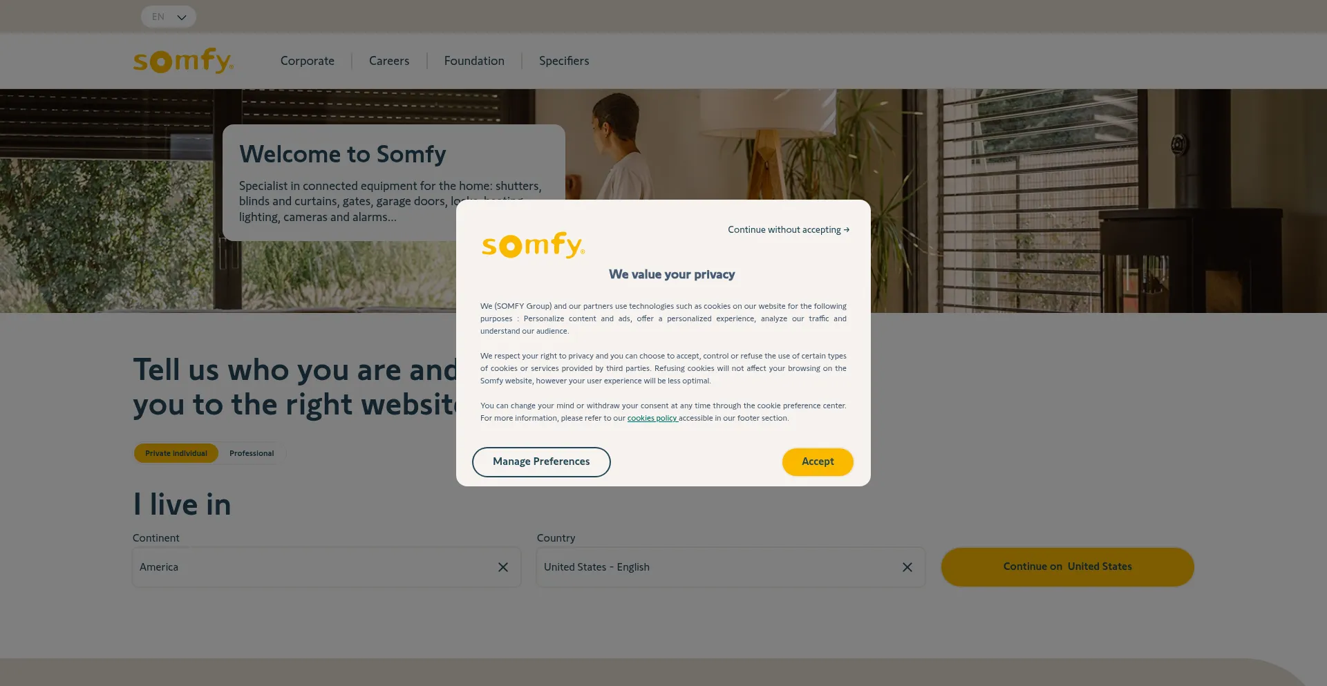 The somfy.com website implements data collection forms that may request personal information including names, email addresses, phone numbers, or other sensitive details. Users should verify the legitimacy of it and review privacy policies before submitting personal data.