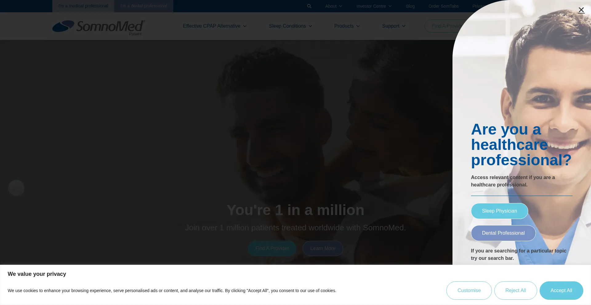 The website implements cookie consent mechanisms in compliance with privacy regulations such as GDPR or CCPA. This demonstrates that somnomed.com adheres to data protection standards and provides users with control over personal data collection practices.
