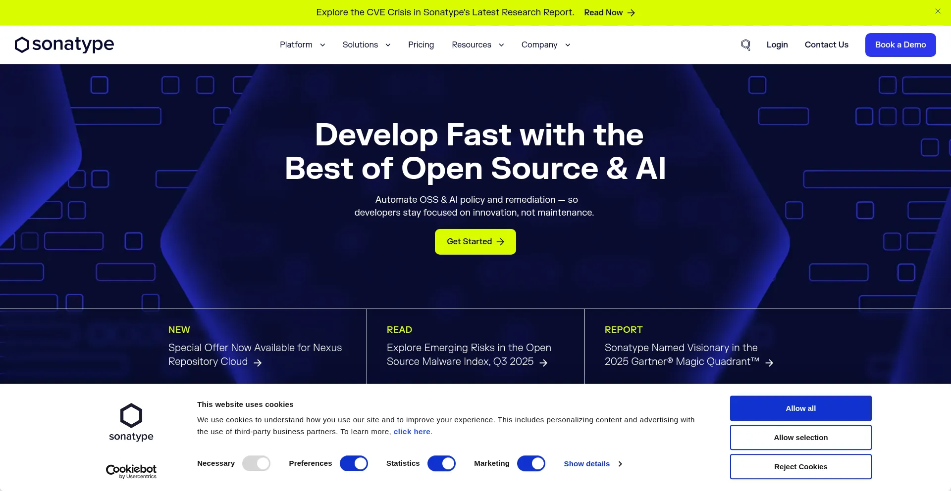 The website implements cookie consent mechanisms in compliance with privacy regulations such as GDPR or CCPA. This demonstrates that sonatype.com adheres to data protection standards and provides users with control over personal data collection practices.