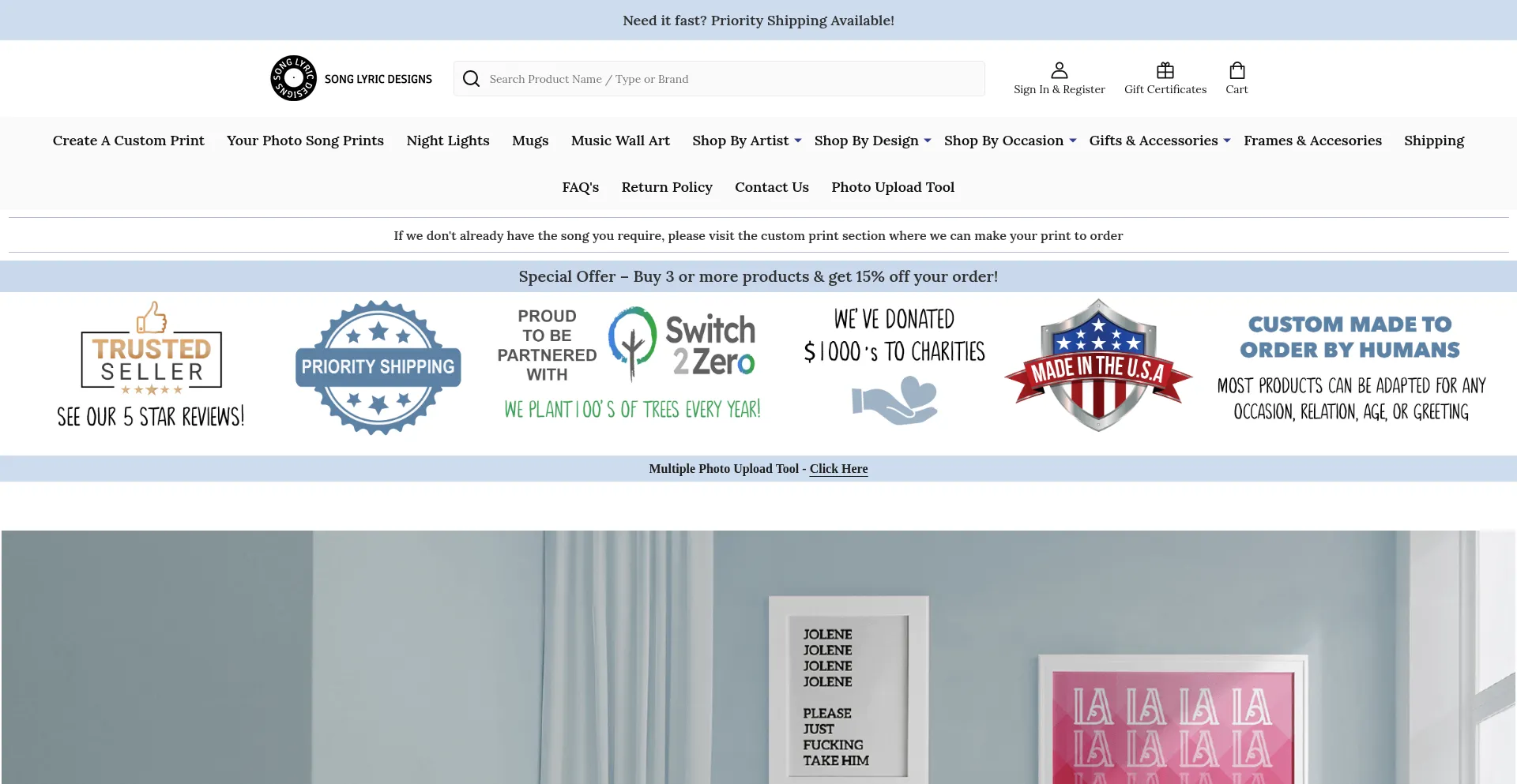 Analysis indicates that songlyricdesigns.com operates as an e-commerce platform facilitating online transactions for goods or services. The website implements shopping cart functionality, payment processing systems, and product catalog features typical of commercial retail operations.