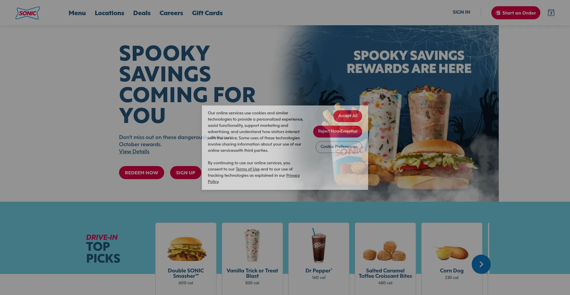 The website implements cookie consent mechanisms in compliance with privacy regulations such as GDPR or CCPA. This demonstrates that sonicdrivein.com adheres to data protection standards and provides users with control over personal data collection practices.
