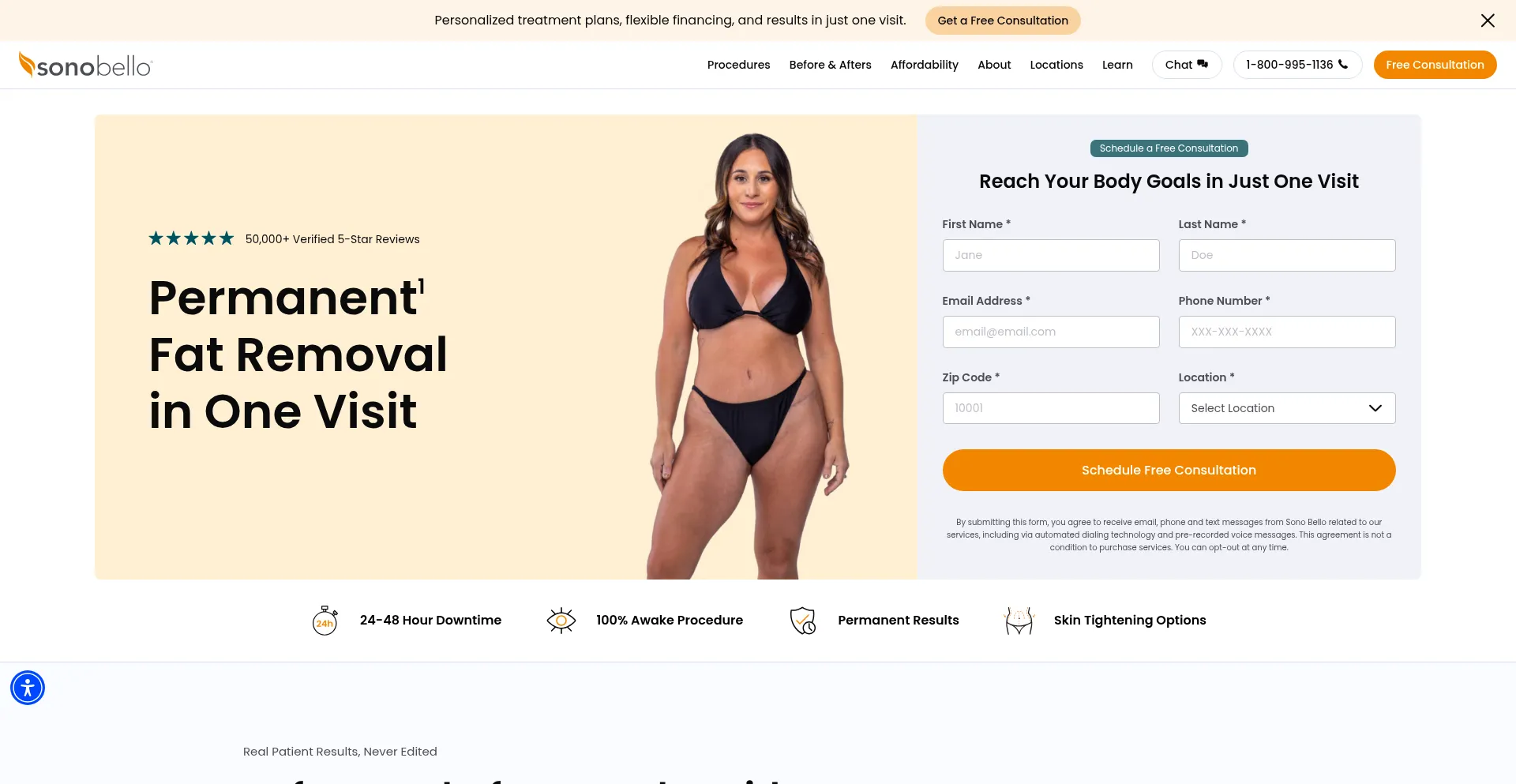 Transform your body and remove stubborn fat with Sono Bello's laser liposuction and body contouring. Schedule your free consultation today!