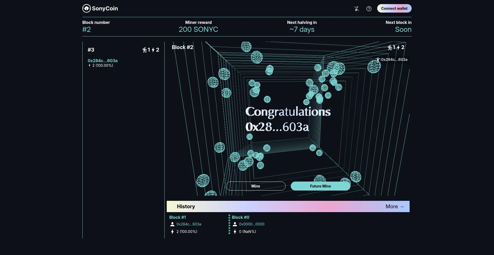 Sonycoin (SONYC) is a Bitcoin-inspired ERC20 token with a one-minute block time. In each block, one miner is randomly selected to receive Sonycoin, with their chances based on t...