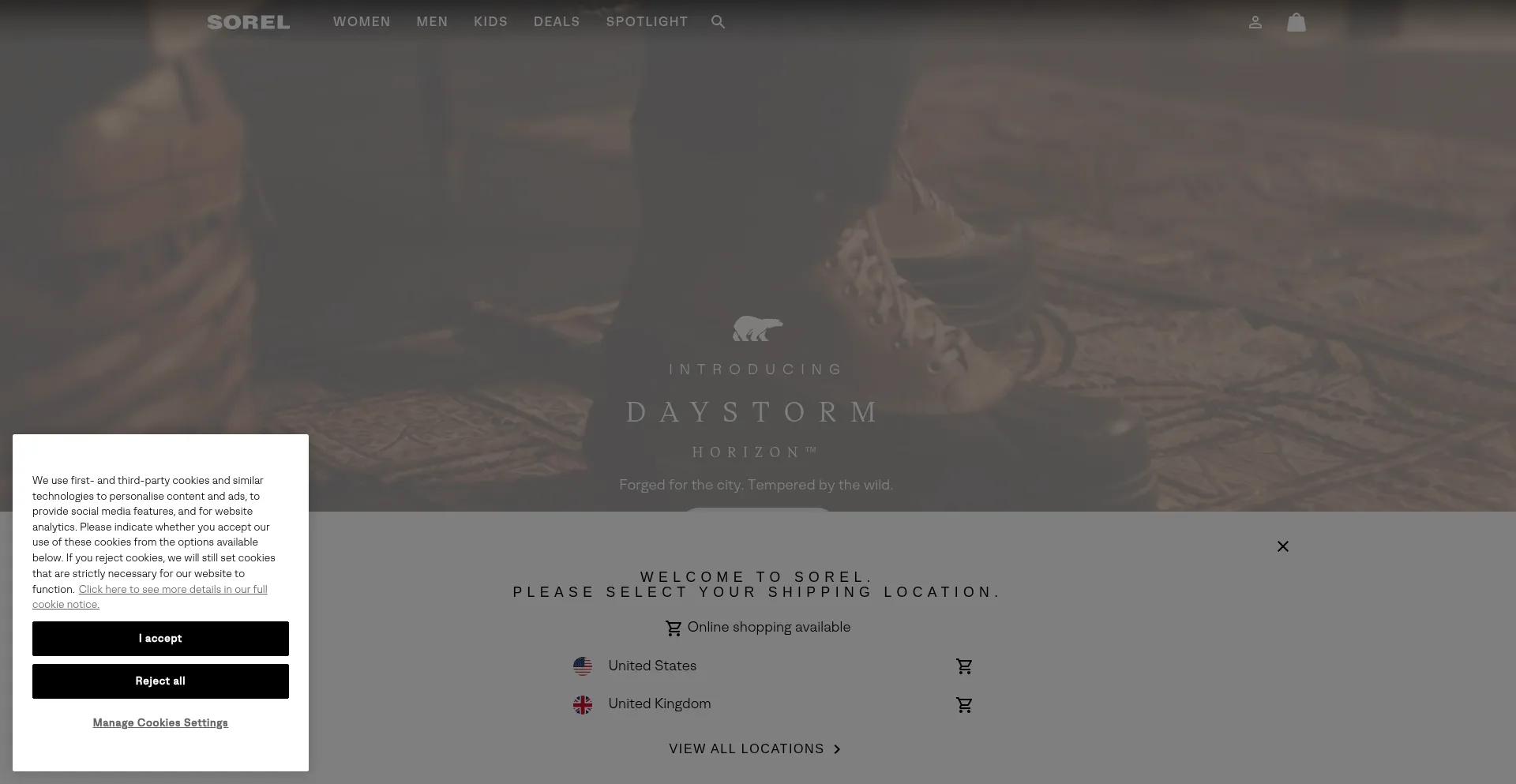 The website implements cookie consent mechanisms in compliance with privacy regulations such as GDPR or CCPA. This demonstrates that sorelfootwear.co.uk adheres to data protection standards and provides users with control over personal data collection practices.