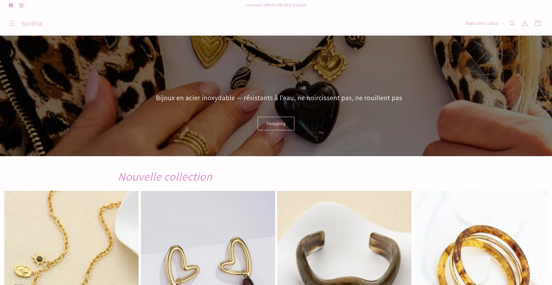 Sorélia store Bijoux en acier inoxydable Bagues Bracelets Colliers Broches Bracelets de cheville Boucles d’oreilles