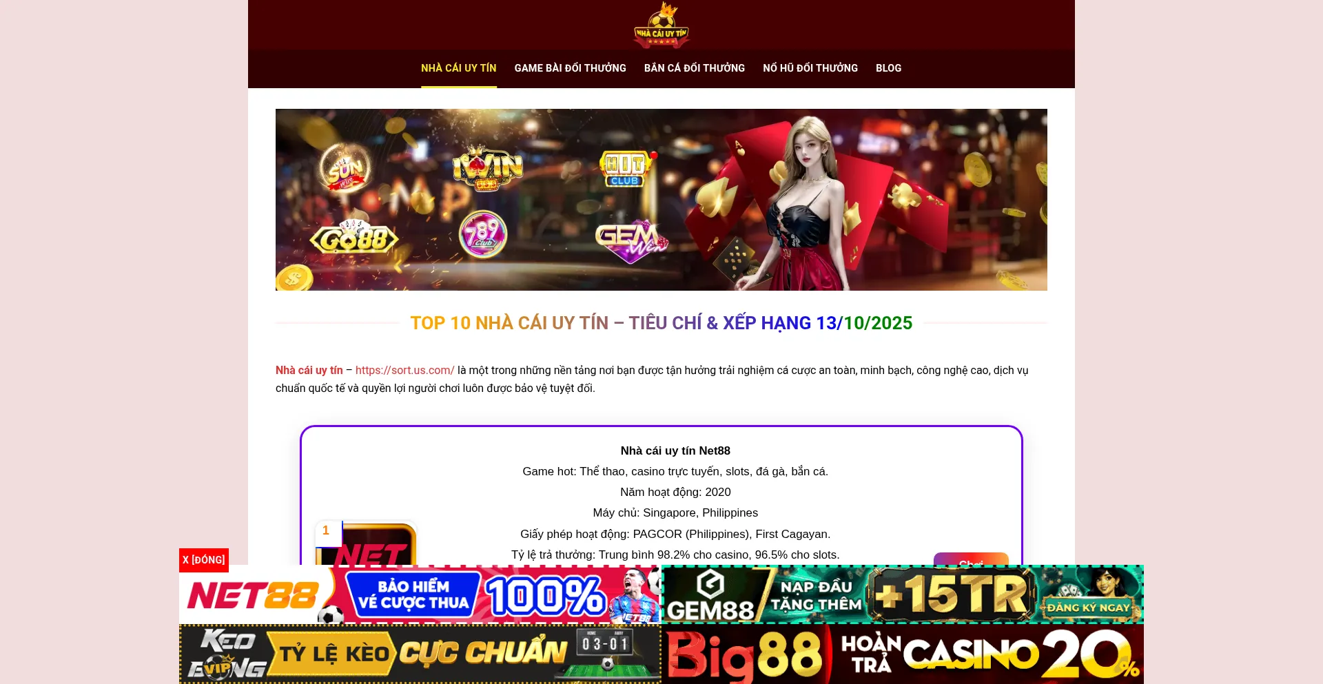 Nha cai uy tin – Cập nhật top 10 nhà cái uy tín, bảng xếp hạng, đánh giá bảo mật, khuyến mãi nhà cái tặng tiền, hướng dẫn chọn tại sort.u...