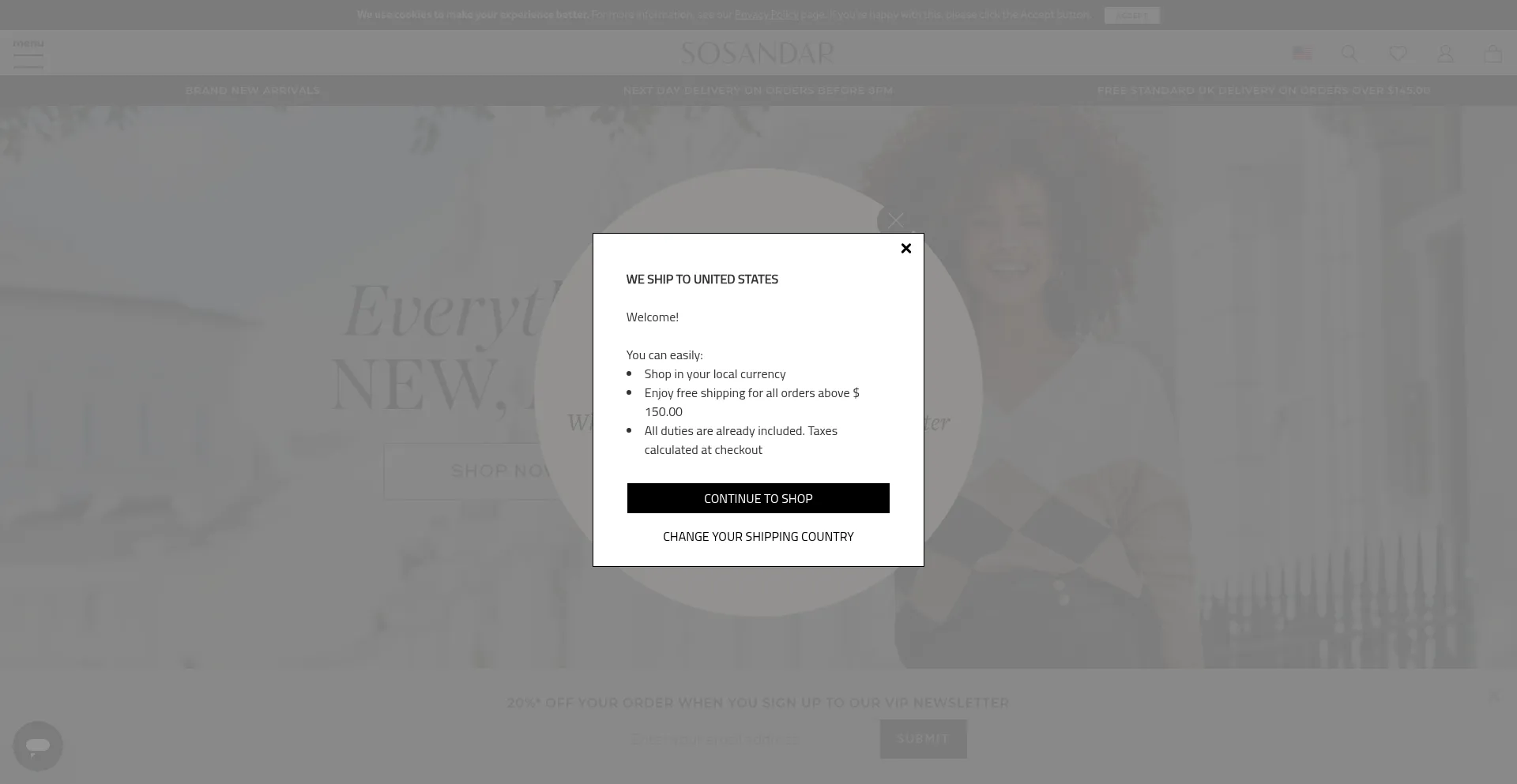 The website implements cookie consent mechanisms in compliance with privacy regulations such as GDPR or CCPA. This demonstrates that sosandar.com adheres to data protection standards and provides users with control over personal data collection practices.