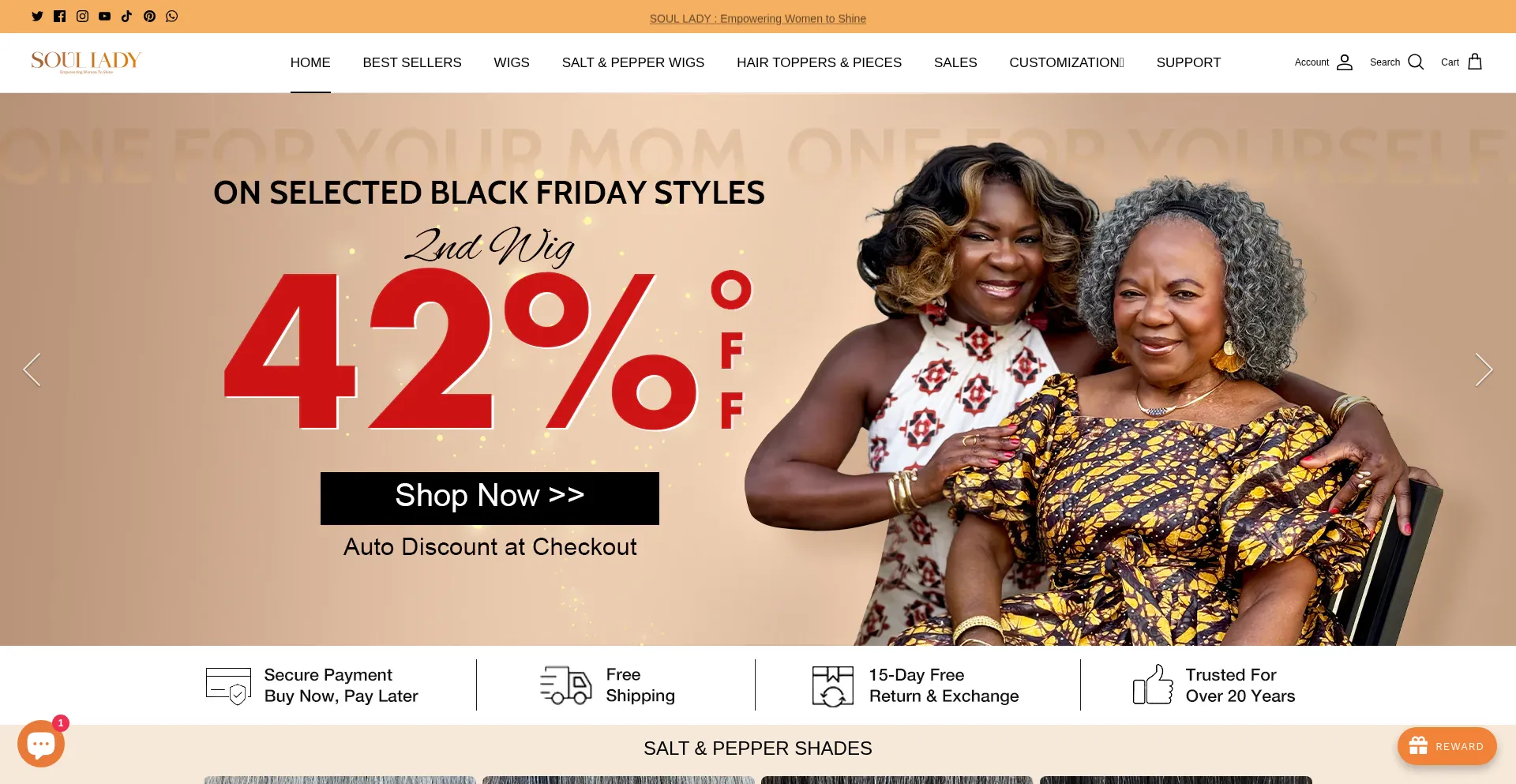 Analysis indicates that soulladywigs.com operates as an e-commerce platform facilitating online transactions for goods or services. The website implements shopping cart functionality, payment processing systems, and product catalog features typical of commercial retail operations.