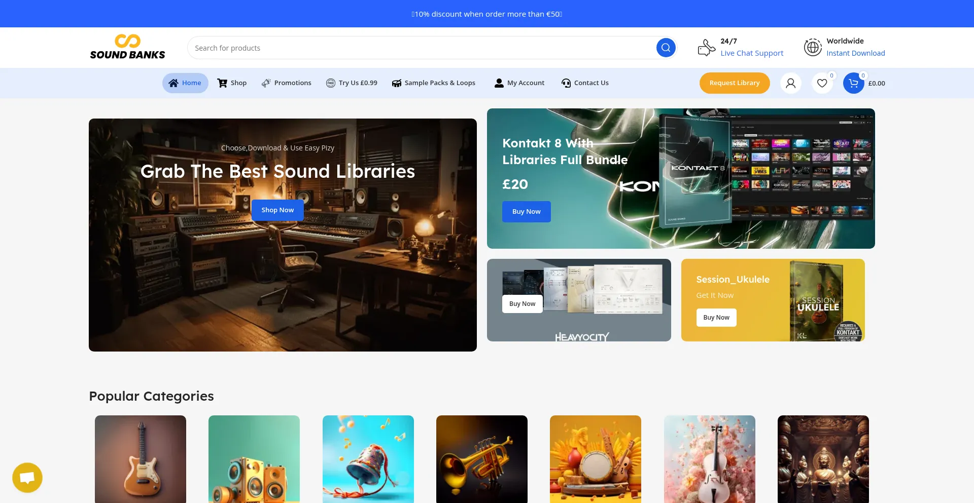 Analysis indicates that soundbanks.io operates as an e-commerce platform facilitating online transactions for goods or services. The website implements shopping cart functionality, payment processing systems, and product catalog features typical of commercial retail operations.