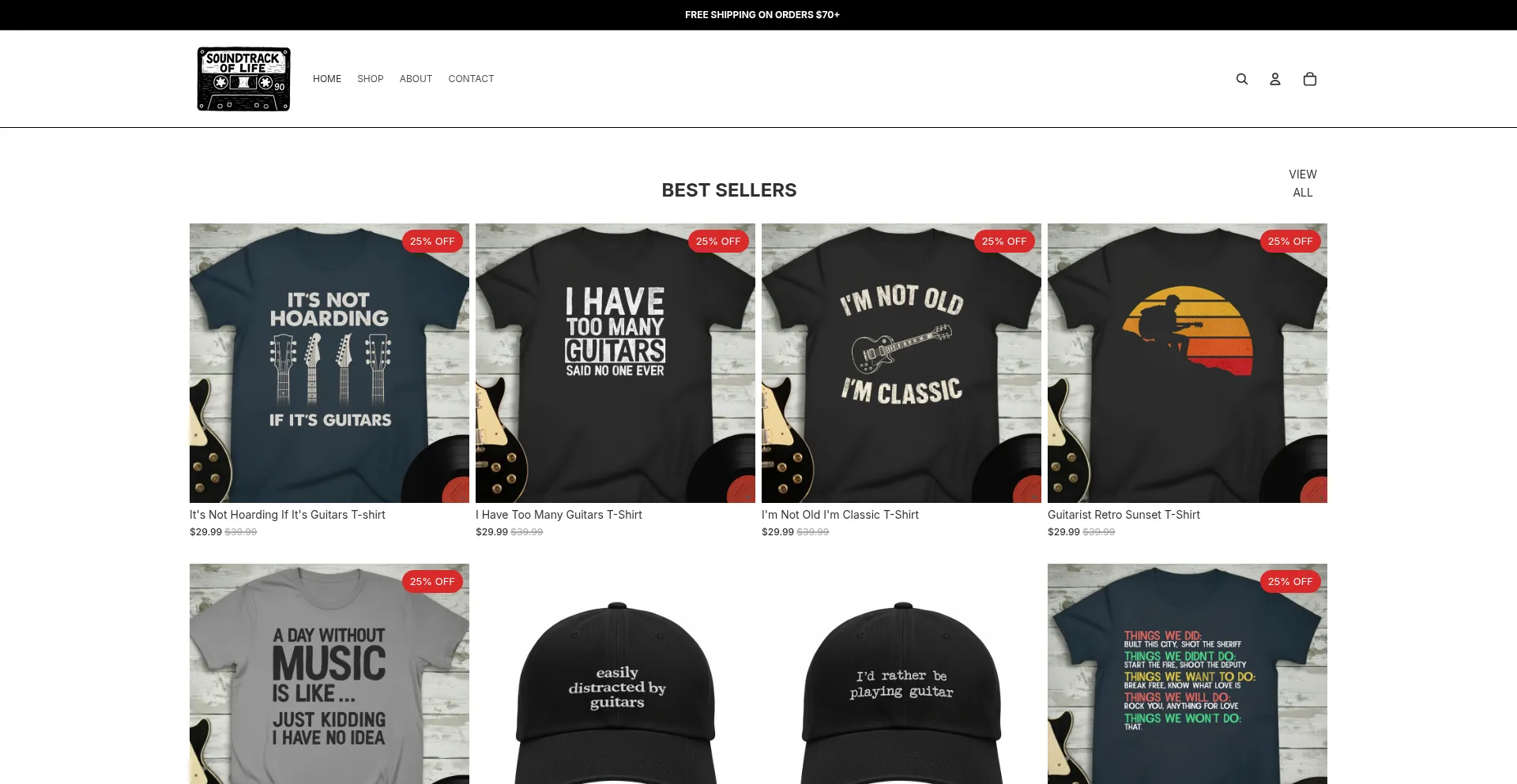 The soundtrackoflife.co website utilizes free e-commerce platform solutions, which may indicate cost-conscious operations but could also suggest limitations in security features, customer support, or advanced functionality compared to enterprise-grade solutions.
