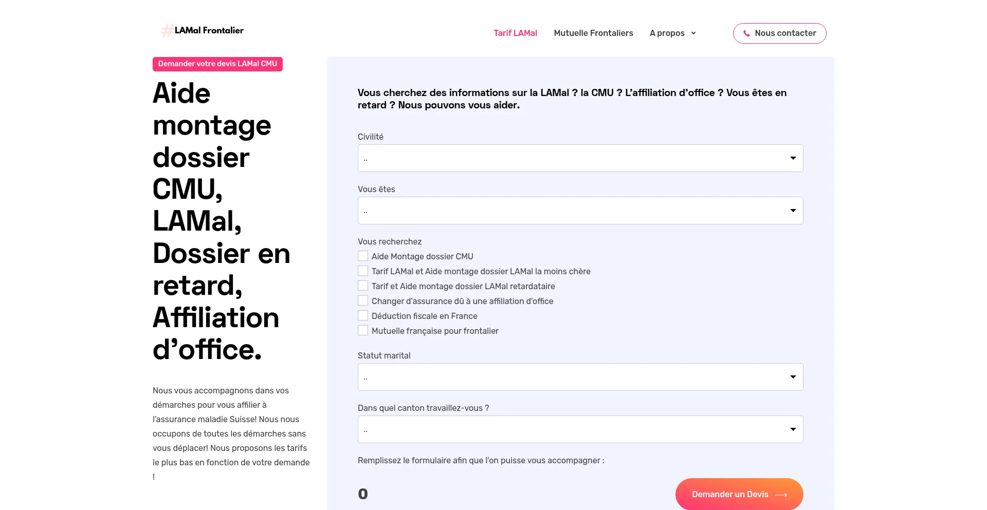 Demander votre devis LAMal CMU Aide montage dossier CMU, LAMal, Dossier en retard, Affiliation d'office. Nous vous accompagnons dans vos démarches pour vous affilier à l'assur...