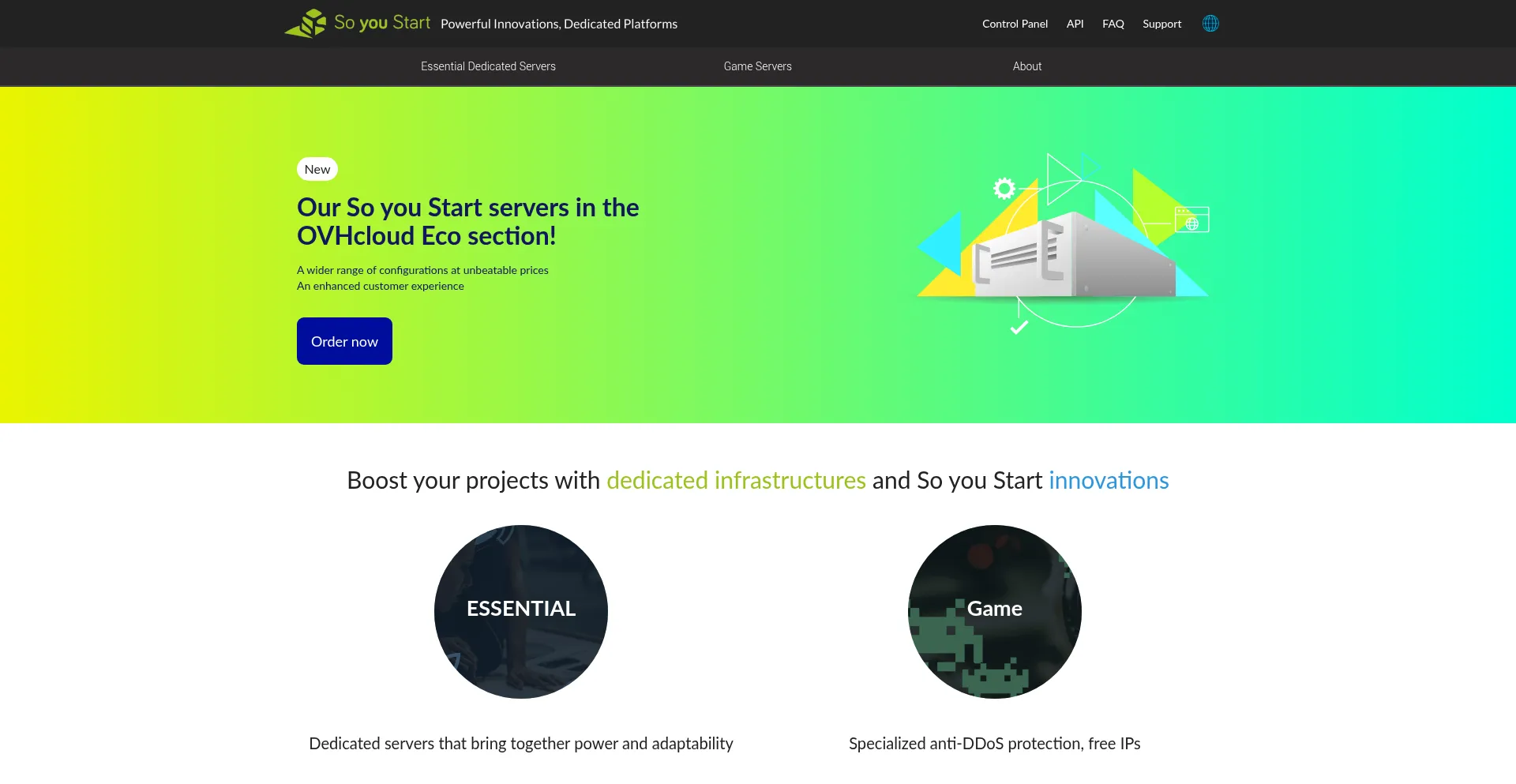 Expand your cloud-based activity by renting a Dedicated Server from So you Start, supported by OVH. By choosing a So you Start server, you can combine reliability, high availabi...
