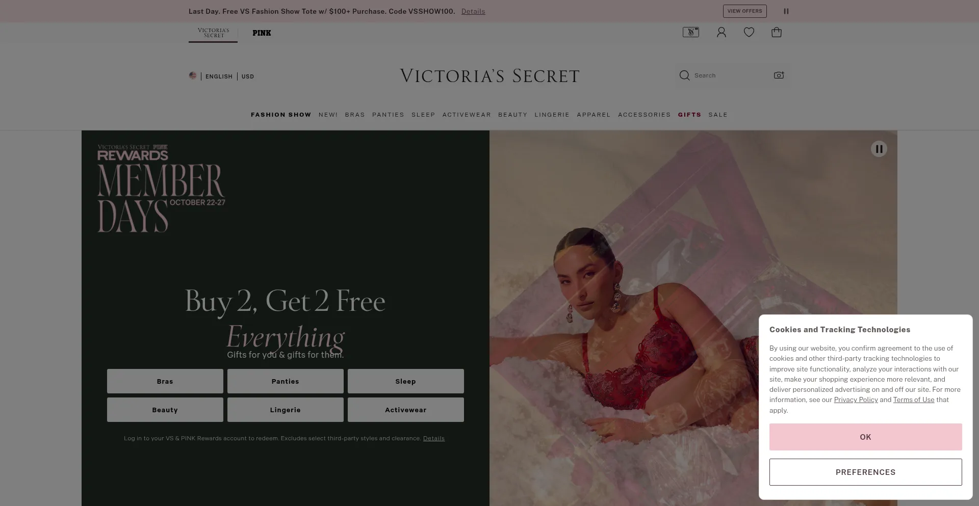 The website implements cookie consent mechanisms in compliance with privacy regulations such as GDPR or CCPA. This demonstrates that sp.victoriassecret.com adheres to data protection standards and provides users with control over personal data collection practices.