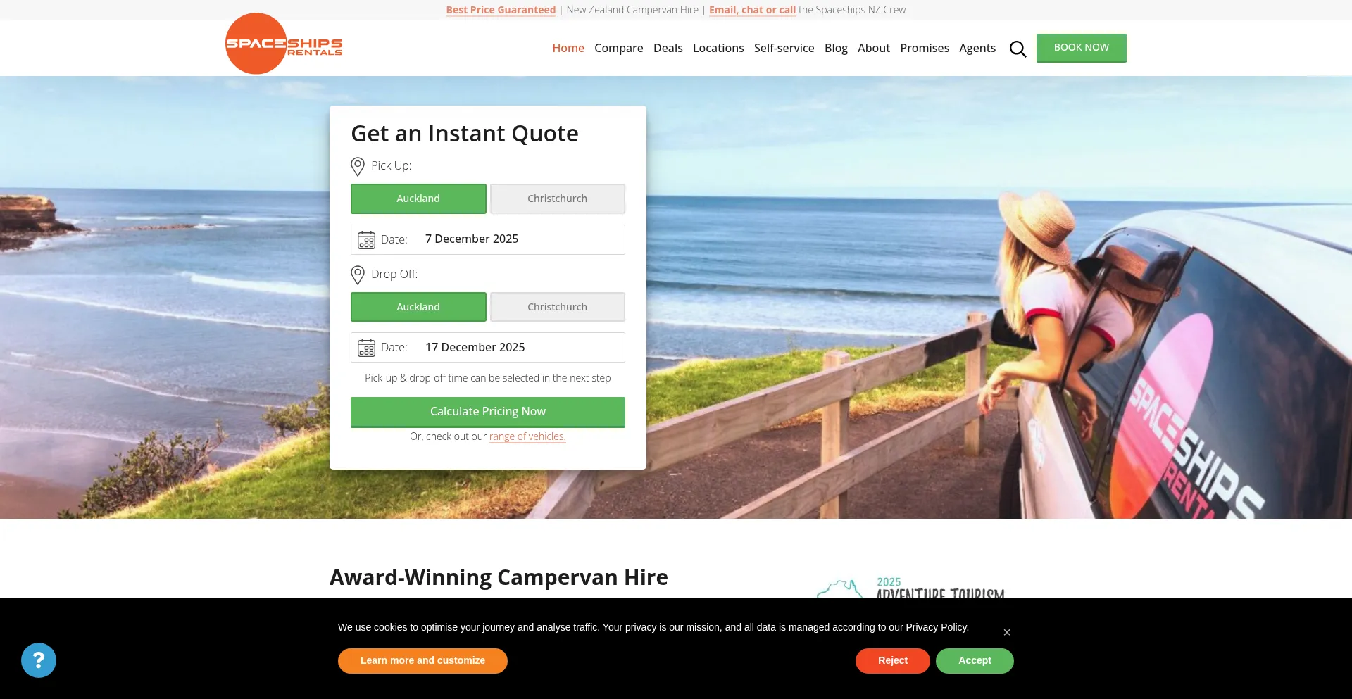 Compact, customised and award-winning campervan hire in New Zealand. Get more included for free: cooking & sleeping gear, unlimited kilometres, no fee for young drivers and more.