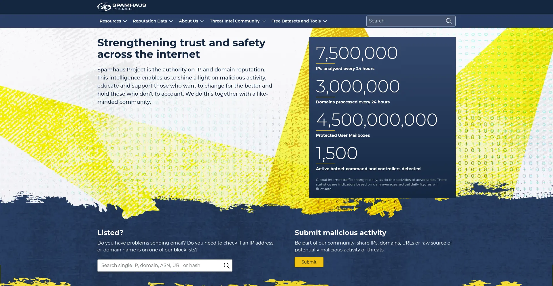 The spamhaus.org website implements data collection forms requesting personal information including names, email addresses, phone numbers, or other sensitive details. Users should verify the legitimacy of it and review privacy policies before submitting personal data.