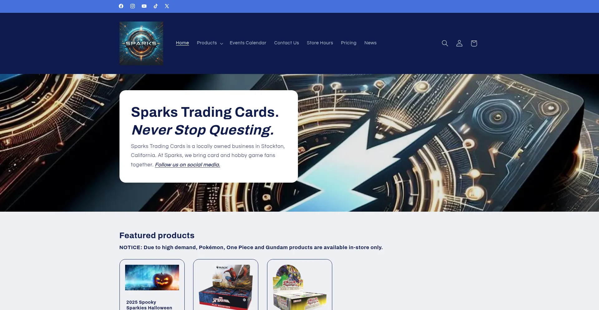 Sparks Trading Cards is a locally owned business in Stockton, California. At Sparks we bring card game fans together.