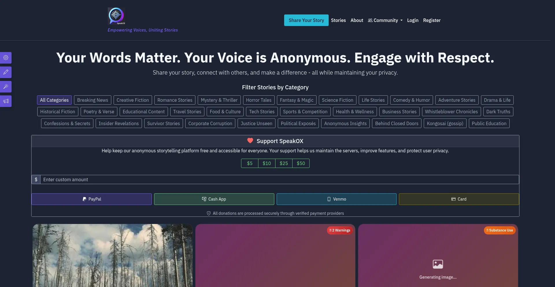 Share your story, connect with others, and make a difference - all while maintaining your privacy.