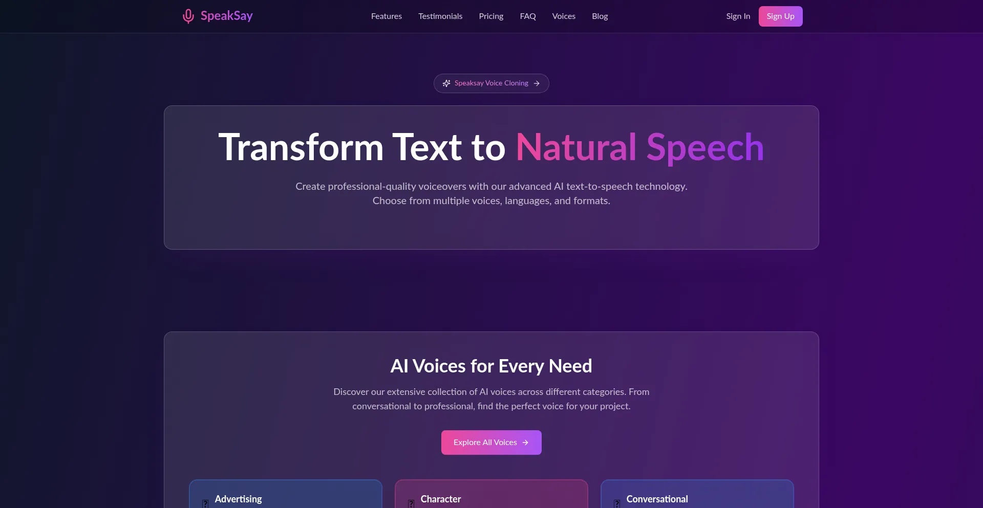 SpeakSay - AI Text-to-Speech & Voice Cloning Platform