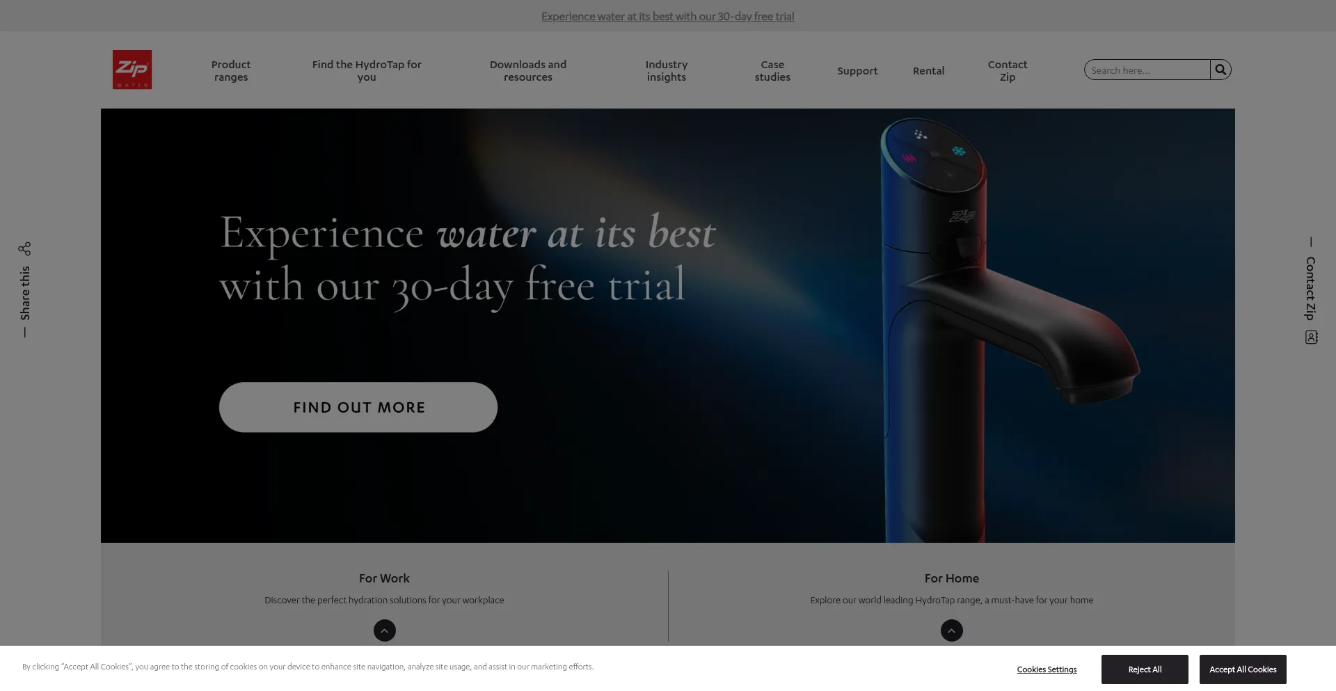 The website implements cookie consent mechanisms in compliance with privacy regulations such as GDPR or CCPA. This demonstrates that specify.zipwater.co.uk adheres to data protection standards and provides users with control over personal data collection practices.