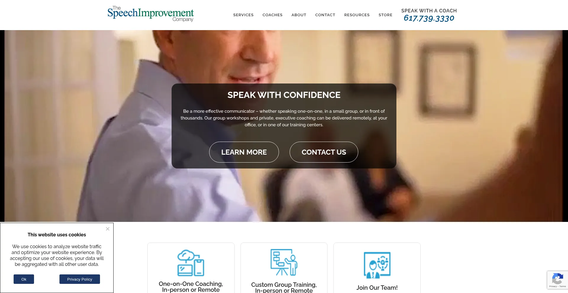The website implements cookie consent mechanisms in compliance with privacy regulations such as GDPR or CCPA. This demonstrates that speechimprovement.com adheres to data protection standards and provides users with control over personal data collection practices.