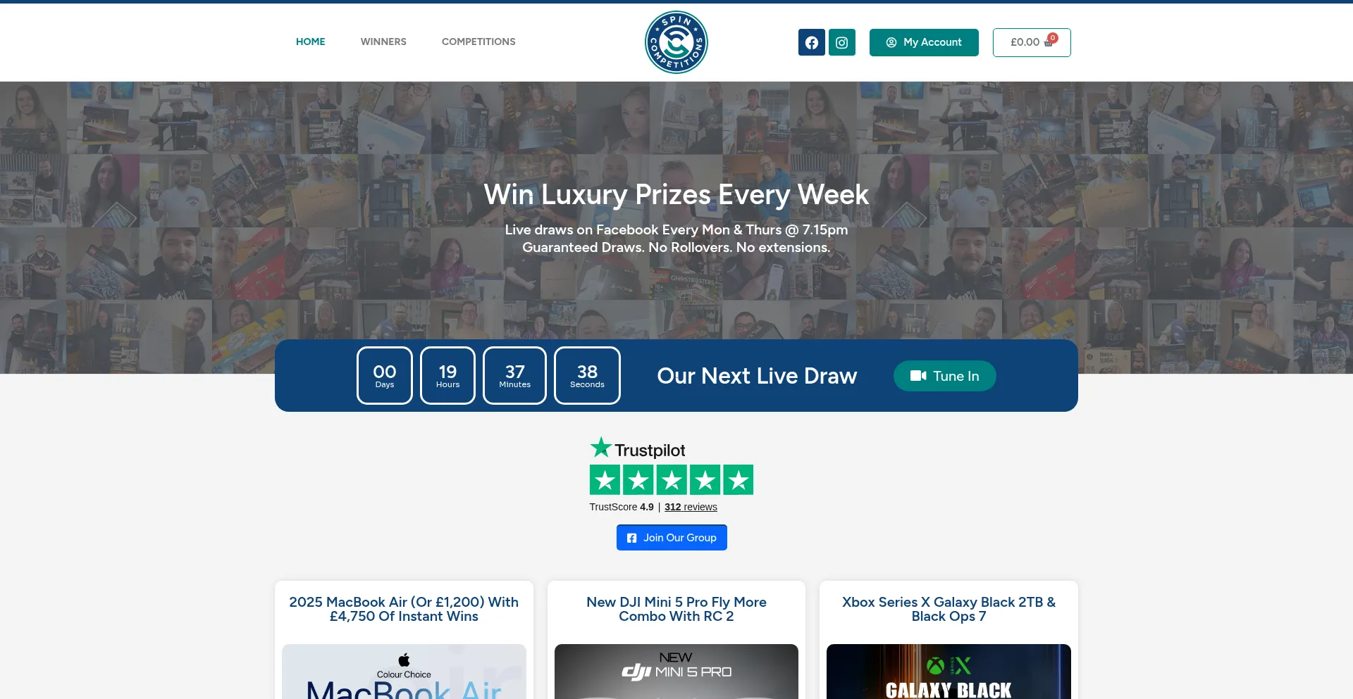 spincompetitions.co.uk has a good Trustpilot score (4.9) based on 312 reviews, indicating a high level of trust from customers. It is a good sign of legitimacy!