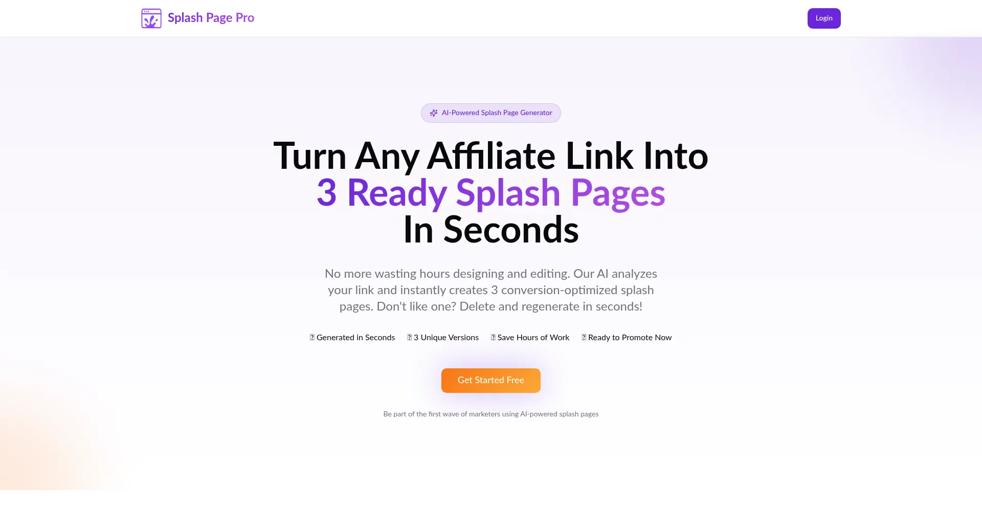 Splash Page Pro - AI-Powered Affiliate Splash Page Generator